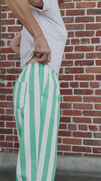 First, it marks the launch of our very first style made overseas — the green striped pants! To make this happen with our brand new, amazing production partners in India, we need to reach a minimum of 150 orders.